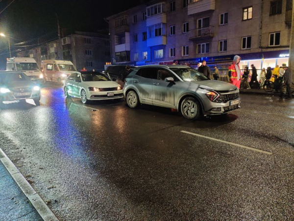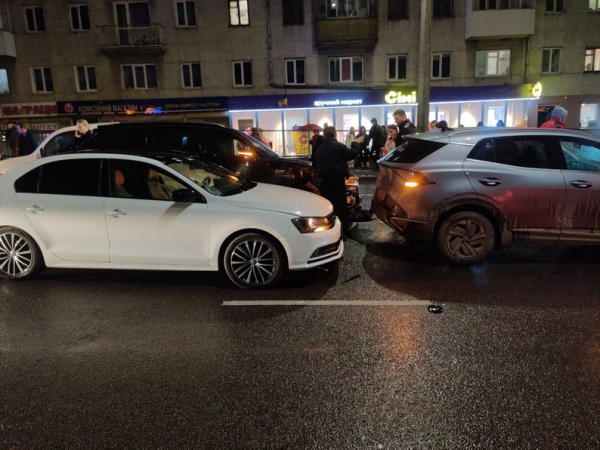 Близько 18:15 на проспекті Перемоги, на з’їзді з моста, зіткнулися орієнтовно п’ять легкових автомобілів. На місці працюють дві бригади екстреної медичної допомоги та поліція.