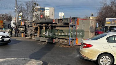 Вранці 2 березня у Харкові на проспекті Аерокосмічному на перехресті з вулицею Молочної перекинулася вантажівка, яка перевозила ліс. Рух трамваїв на цій ділянці припинено, повідомила прессекретарка Харківської міськради Мар’ям Сатуєва.