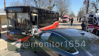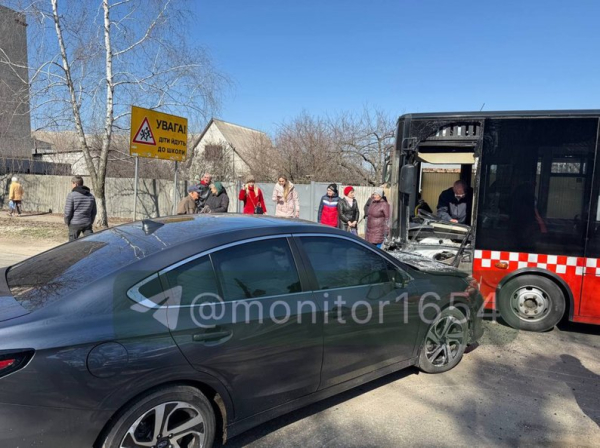 У Новобаварському районі Харкова вдень 23 березня автомобіль Subaru в’їхав у маршрутний автобус під час посадки й висадки пасажирів.