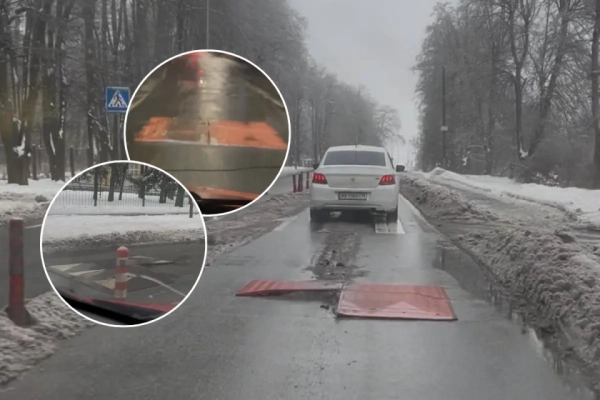 У Вінниці на кількох «берлінських подушках» зафіксували тріщини, зсуви та відломлені елементи — деякі частини повністю відірвані, на інших асфальт піднявся в місцях кріплення. Переїзд через пошкоджені ділянки небезпечний для автомобілів навіть на невеликій швидкості.