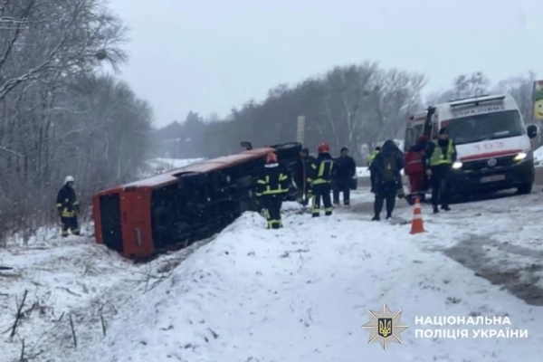 За повідомленням Хмельницького районного управління поліції, водій — 66‑річний житель Славути — виїхав на узбіччя, після чого автобус перекинувся.
