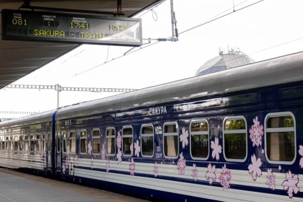 Поїзд курсує за маршрутом «Київ – Ужгород» через Вінниччину, де навесні цвітуть сакури. Проєкт реалізовано за підтримки Посольства Японії в Україні та JICA.