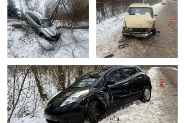 Першу ДТП зафіксували о 10:29: 32‑річна водійка Renault не впоралася з керуванням, з’їхала в кювет і в’їхала в дерево. У салоні були її доньки 2 та 10 років; дітей доставили до лікарні, після огляду відпустили додому. Можливою причиною називають складні погодні умови.