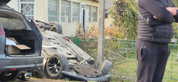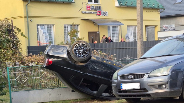 Керманич не впорався з керуванням і врізався в припаркований на узбіччі Ford. BMW перекинувся на дах і вʼїхав у паркан.