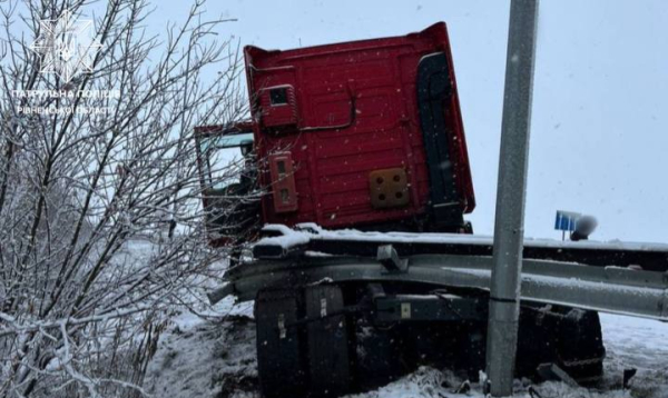 На Рівненщині молодий водій фури збив ліхтар