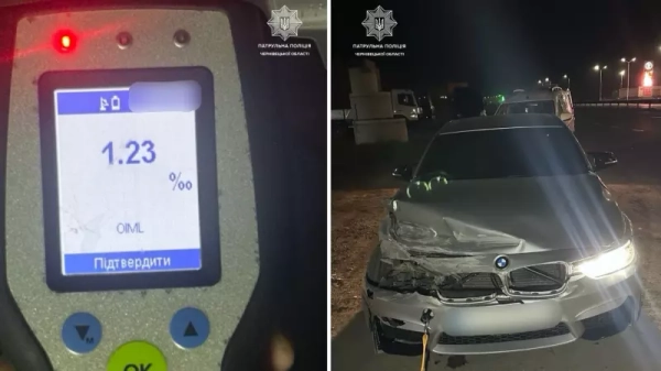 На Буковині п’яний водій BMW в’їхав у відбійник