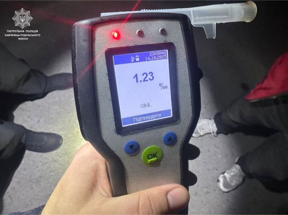 Огляд на місці приладом «Drager» показав 1,23 проміле алкоголю. Водій визнав, що вживав алкоголь перед поїздкою.
