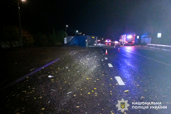 За попередніми даними, 34-річний мешканець с. Пугачівка, керуючи вантажівкою Volvo, втратив контроль над керуванням, виїхав на зустрічну смугу, зіткнувся з відбійником і перекинувся.