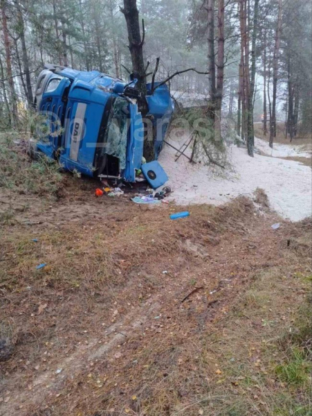 На Поліссі, у Вараському районі Рівненської області, вантажівка злетіла з траси й перекинулась. Вантаж розсипався по лісу. Деталі поки невідомі.