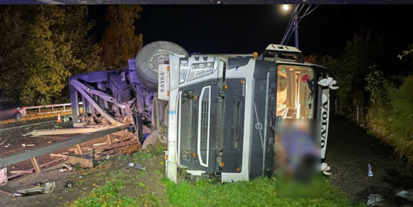 Під Дубном перекинулася вантажівка — рух ускладнено