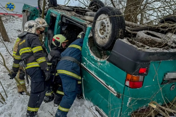 7 лютого на дорозі між селами Бубнівка та Дмитренки мікроавтобус із восьмеро пасажирів з’їхав у кювет та перекинувся.