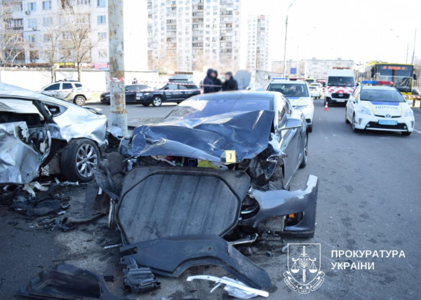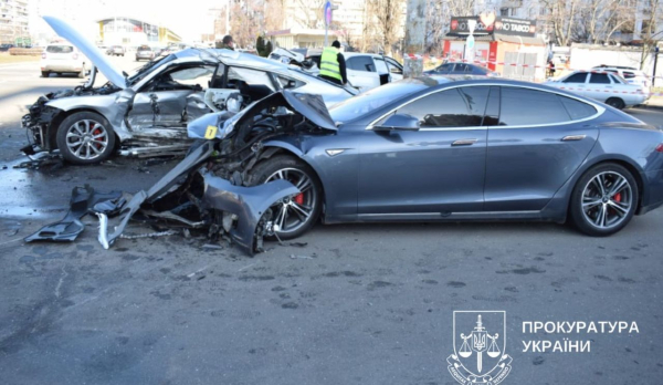 ДТП сталася 2 березня 2023 року на перехресті Оболонського проспекту: зіткнулися Tesla, Audi A7 і Toyota Camry. Водій і пасажир Audi отримали тяжкі травми, 22‑річний пасажир помер у лікарні. Постраждалий і загиблий були працівниками поліції. Розслідування доручили слідчим ТУ ДБР у Києві.
