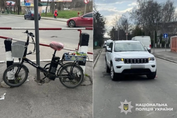 У Хмельницькому 4 квітня близько 14:55 на вулиці Олексія Скоблі сталося зіткнення автомобіля «Jeep Cherokee» та електровелосипеда.
