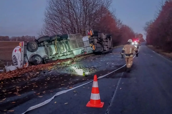 Вранці 3 листопада на об’їзній дорозі між селами Куна та Кунка Гайсинської громади перекинулася автоцистерна зі скрапленим газом.