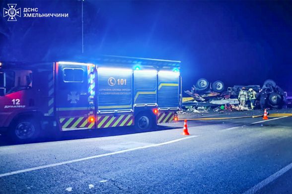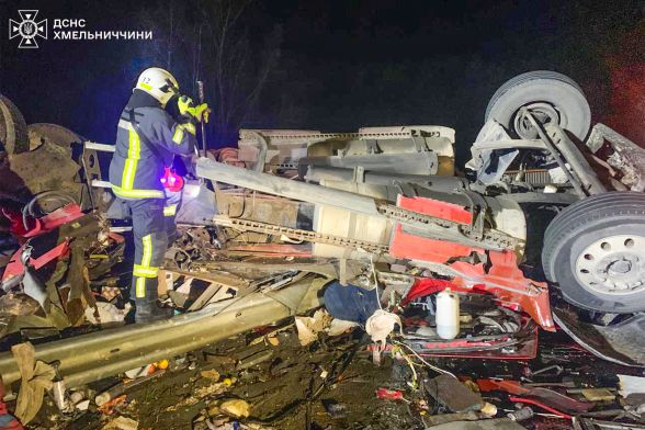 Смертельна аварія з вантажівкою поблизу Міцівців Хмельницької області. Фото: Головне управління ДСНС у Хмельницькій області