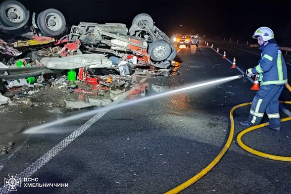 ДСНС від’єднали акумуляторні батареї та змили з дороги паливно‑мастильні матеріали, щоб запобігти загорянню. Причини і обставини ДТП з’ясовують правоохоронці.