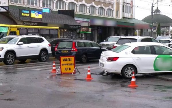 Зіткнулися легковий автомобіль і таксі; через те, що аварія сталася біля перехрестя, ускладнився ранковий рух по вулиці.