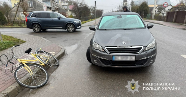 1 грудня близько 08:45 у Пустомитах (Львівська область) на перехресті вулиць Шевченка й Шухевича водійка Peugeot 308 збила велосипедистку.