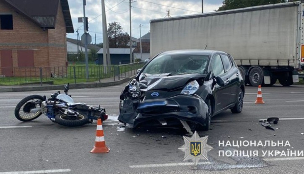 За попередніми даними, Nissan Leaf під керуванням 59-річної жительки Львівського району зіткнувся з мотоциклом Honda, яким керував 29-річний львів’янин.