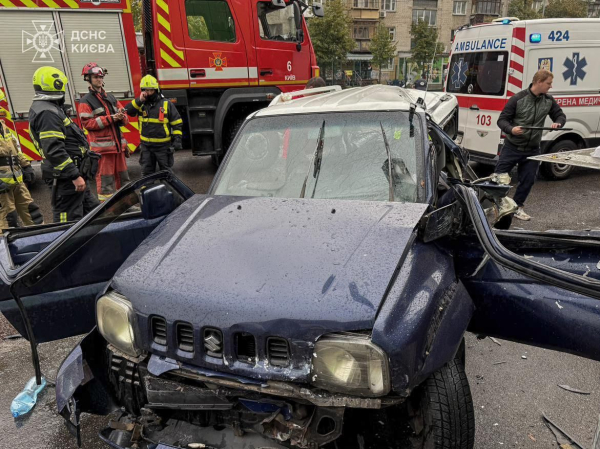 О 13:23 рятувальники деблокували потерпілих та передали медикам.